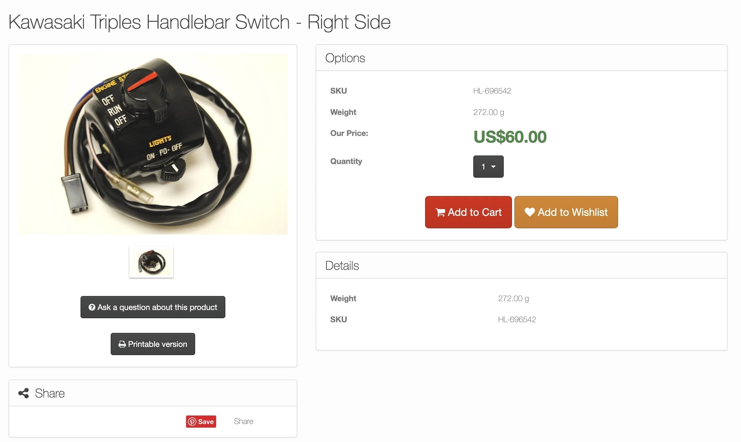 Starts no problem, and continues running when I reconnect the right hand switchgear block connector. When I went to turn it off with the key it kept running. Didn’t realize it by-passes the ignition also. These things are so easy to steal! I guess you have to get around the seat lock on the H2C though. So in summary it seems to be the kill switch because sometimes I was getting continuity in the ‘on’ position, which explains why it was intermittently dying. Unless the lighting switchgear side of it is some how affecting the kill switch, the only thing I haven’t looked into, I don’t think there is any long term remedy, so replacement seems to be the only route, but with what? Whatever’s available is almost certainly just like mine. Aftermarket and cheaply made. My first go to jessbikes.com doesn’t appear to have any right hand switchgear, although I will connect with him to make sure. Diablo has, and I thought surprisingly cheap ($60) and looks just like mine=potentially problematic, and then Z1parts is even cheaper at $39.50. Hmmm. Who knows what they are like.