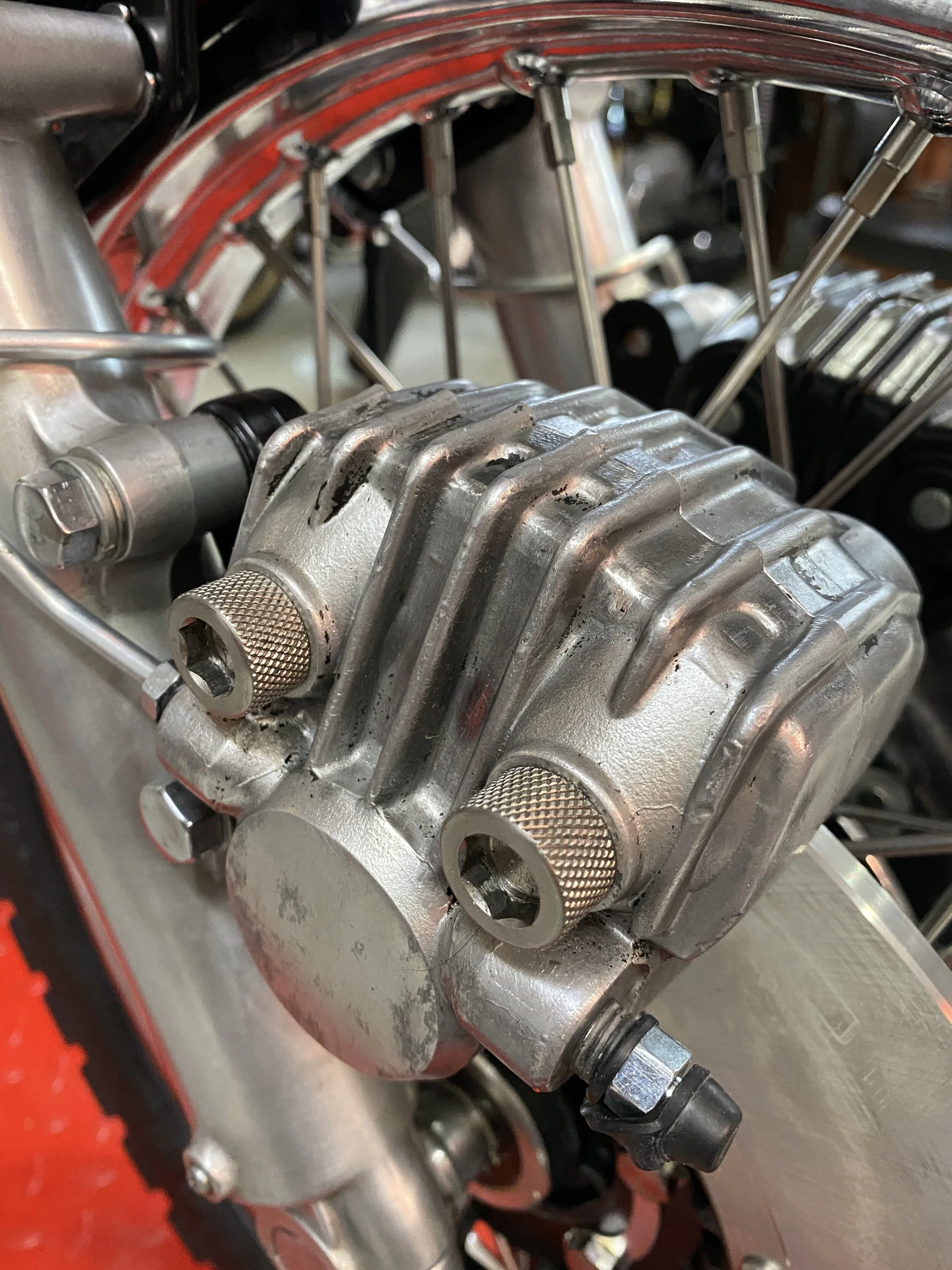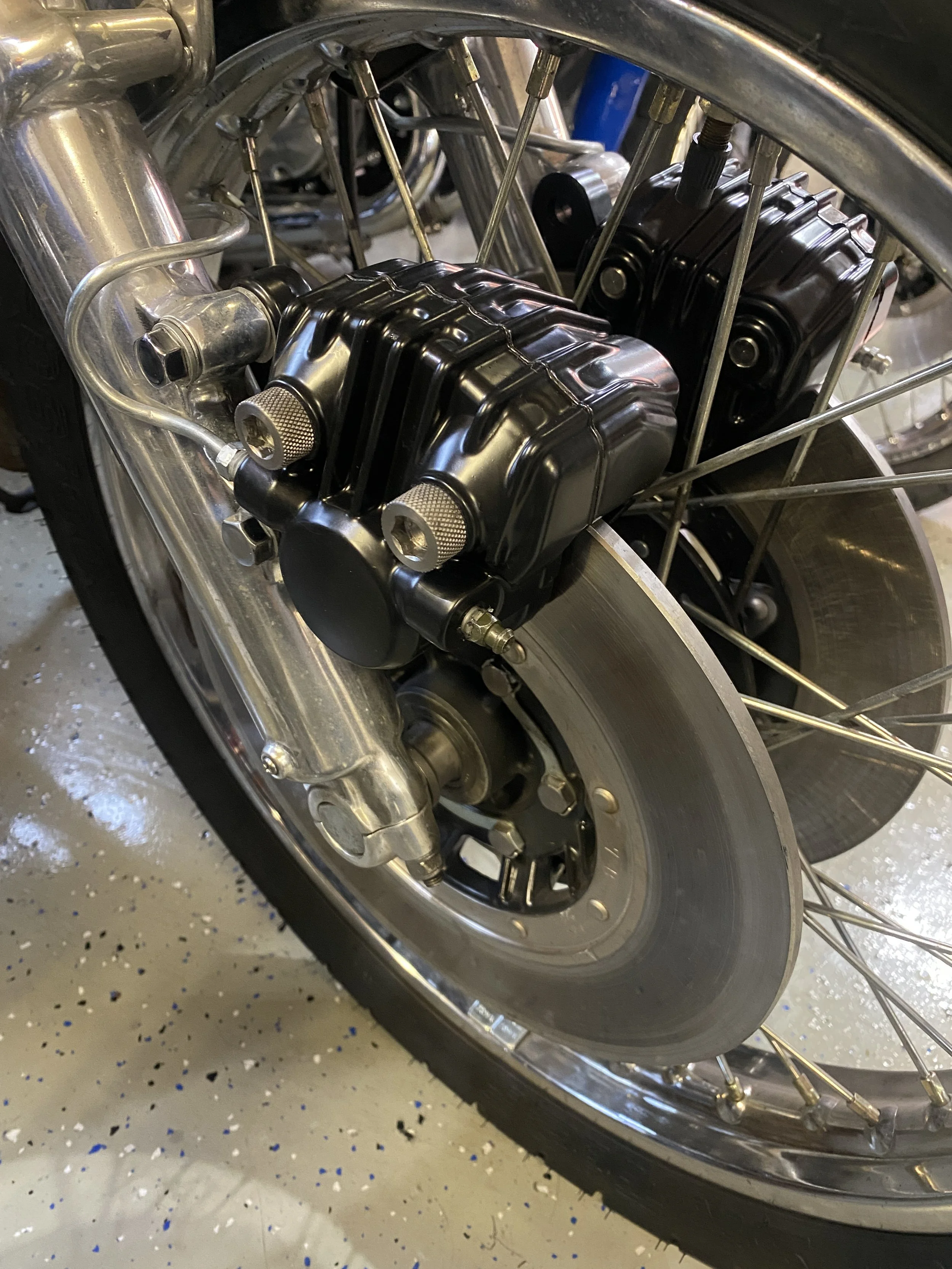I’ve never read reports of fantastic brake performance from the OEM front calipers, but with no intention to change the look of the bike, replacing existing components with modern pieces was out of the question so I decided to add another front disc. The seller offered to do that for $2,000. I passed on that and elected to take it on myself- but note this is in no way a lesson on how to do it! If you choose to copy what I have done- you do so at your own risk…brakes will save your life…or ruin it if they don’t work…