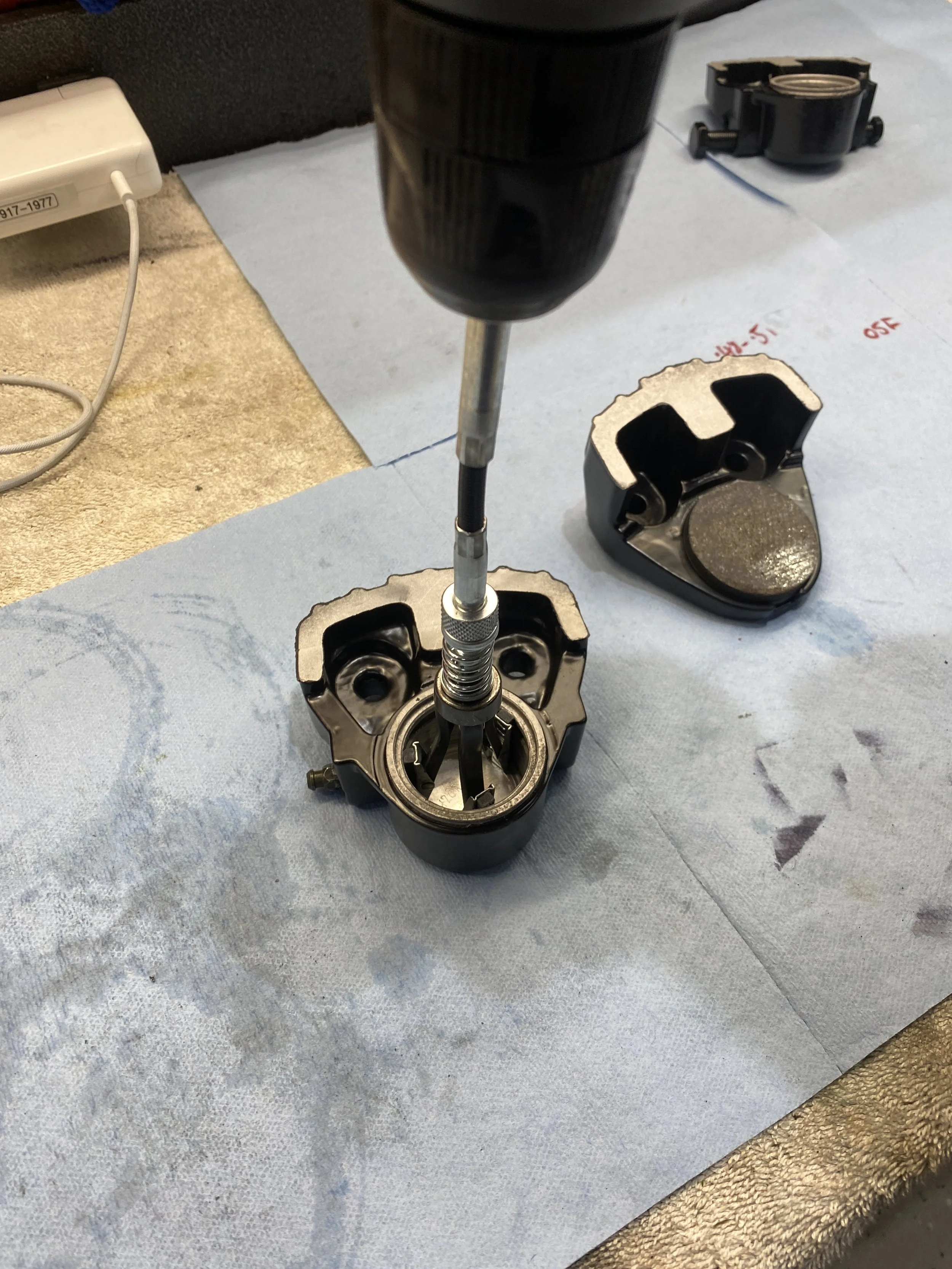 First I removed the cone piece that engages with the brake line. My hillbilly arrangement has worked twice. Basically used something the same diameter of the cone (piece of M6 bolt) and an 3mm allen....
